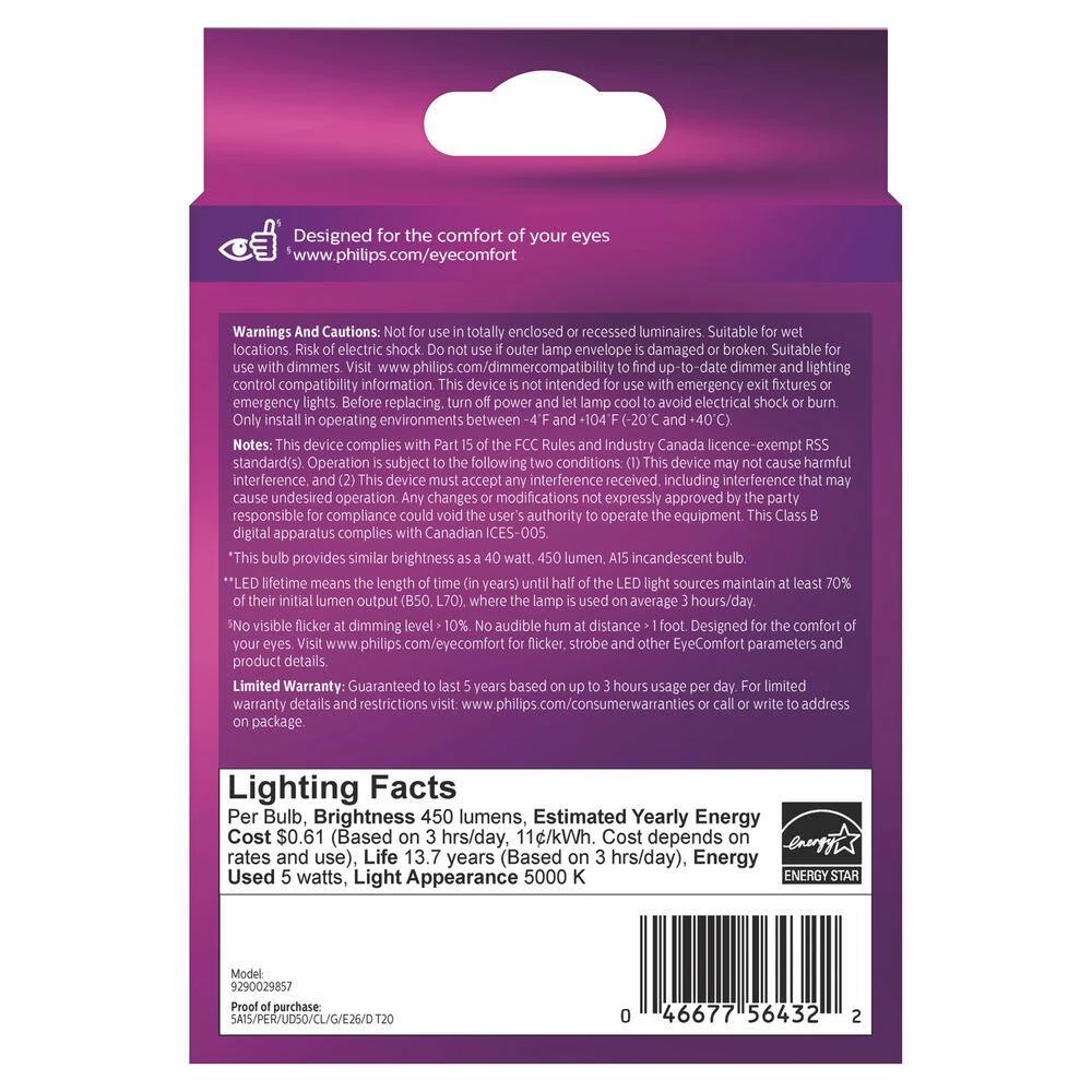 - Long-lasting – enjoy long-lasting, beautiful light for up to 15,000-hours (add in LED footnote) or up to 15-years with average use of 3-hours a day