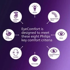 - EyeComfort – our LED lights are designed for the comfort of your eyes, meeting our strict criteria for EyeComfort, a standard we developed to measure key factors that impact the comfort of your eyes
