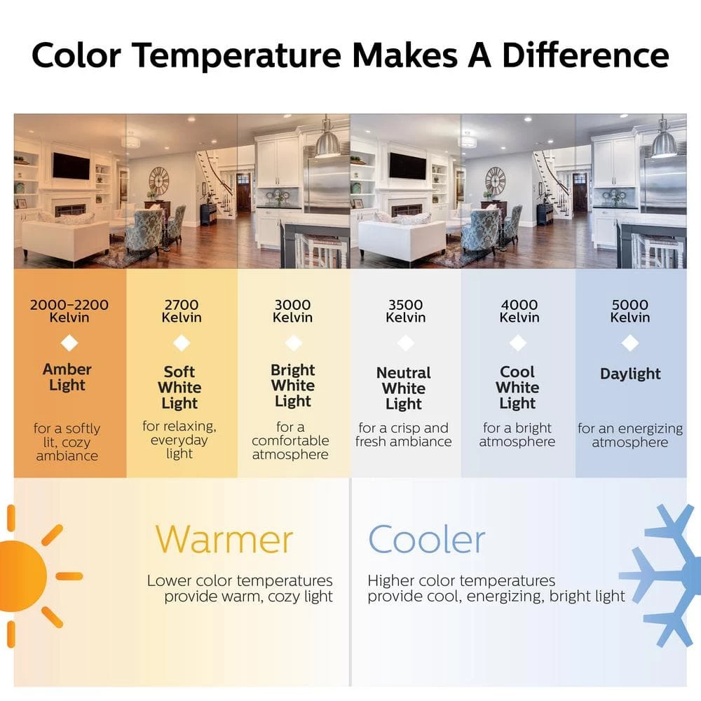 - Soft white this bulb has a color temperature of 2700K, creating a lighting effect that is warm and soft