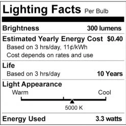 - Long-lasting – enjoy long-lasting beautiful light and reduce the hassle of frequently replacing bulbs this LED bulb has a lifetime of up to 11,000-hours with average use this bulb can last up to 10-years