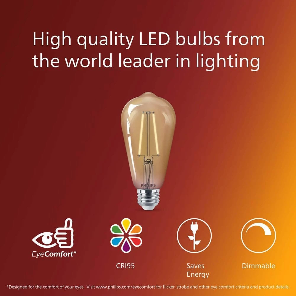 - Complete the look Philips vintage filament LED bulbs are available in a range of shapes and sizes to fit multiple fixtures and applications with a full family of bulbs to choose from, it is easy to co-ordinate a vintage style throughout your home, indoors or out