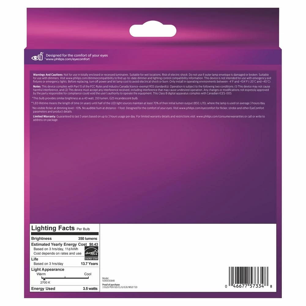 This Ultra Definition dimmable bulb is both comfortable for your eyes and enhances the way you see colors around you. With a high color rendering index (CRI) comparable to natural light, you can enjoy soft white light that brings out the true colors of your home. Includes a 3-year warranty.