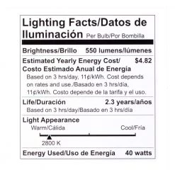 - Estimated yearly energy cost: $4.82 (based on 3 hours/day, 11c/kWh. cost depend on rates and use)