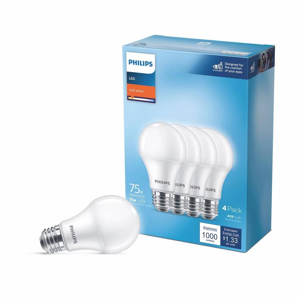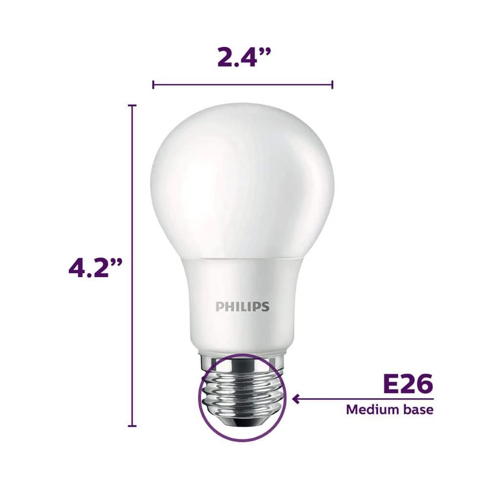 The Philips 75W equivalent A19 LED bulb is specifically designed to light your home with a frosted, a-shaped glass bulbs. Enjoy comfortable soft-white light with familiar shapes you know and love. These frosted glass LED bulbs use significantly less energy than traditional incandescent light bulbs. This frosted glass bulb has a medium (E26) base.