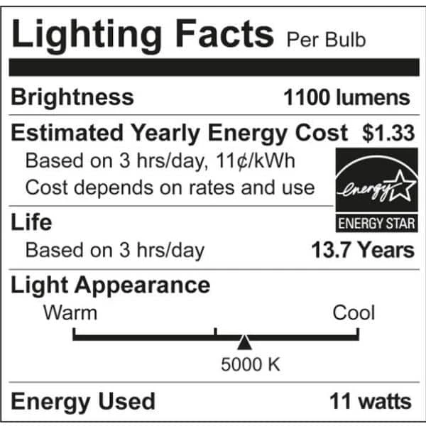 This Ultra Definition dimmable bulb is both comfortable for your eyes and enhances the way you see colors around you. With a high color rendering index (CRI) comparable to natural light, you can enjoy full- spectrum daylight that brings out the true colors of your home. Includes a 3-year manufacturer warranty.
