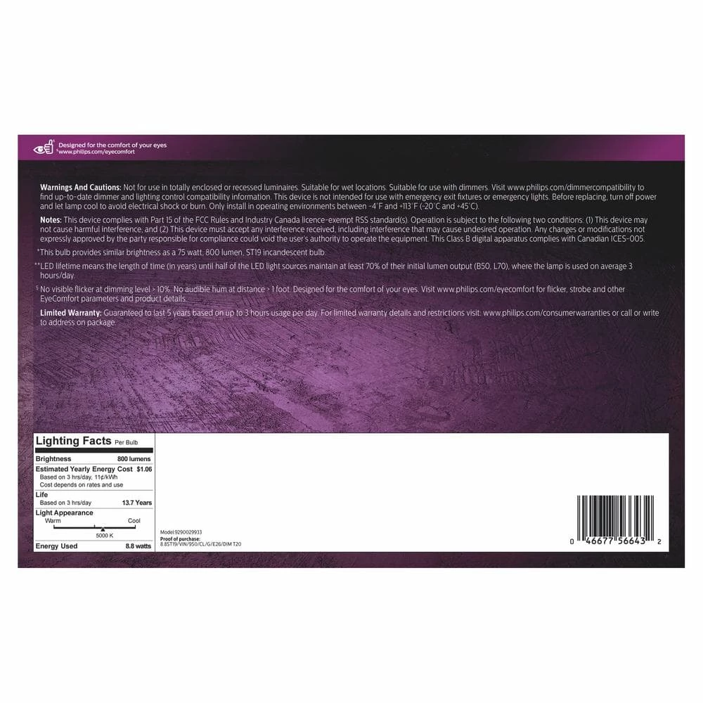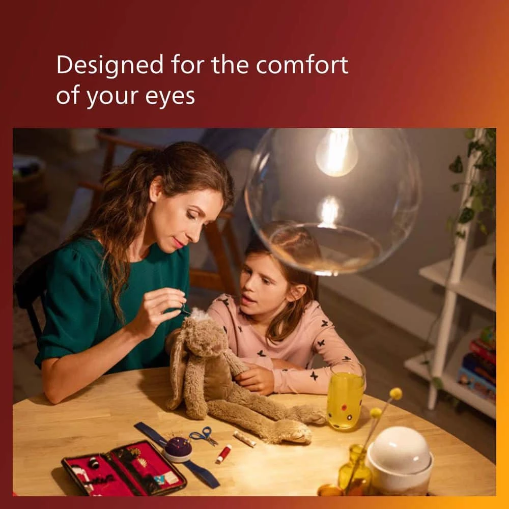 This Vintage LED Clear Spiral Filament bulb is designed to be seen. This nostalgia-inspired dimmable LED bulb allows you to create a refreshing ambience with daylight tones. Vintage LED bulbs also meet Philips EyeComfort criteria, a standard we developed to measure our products against a set of key factors that can impact the comfort of your eyes.