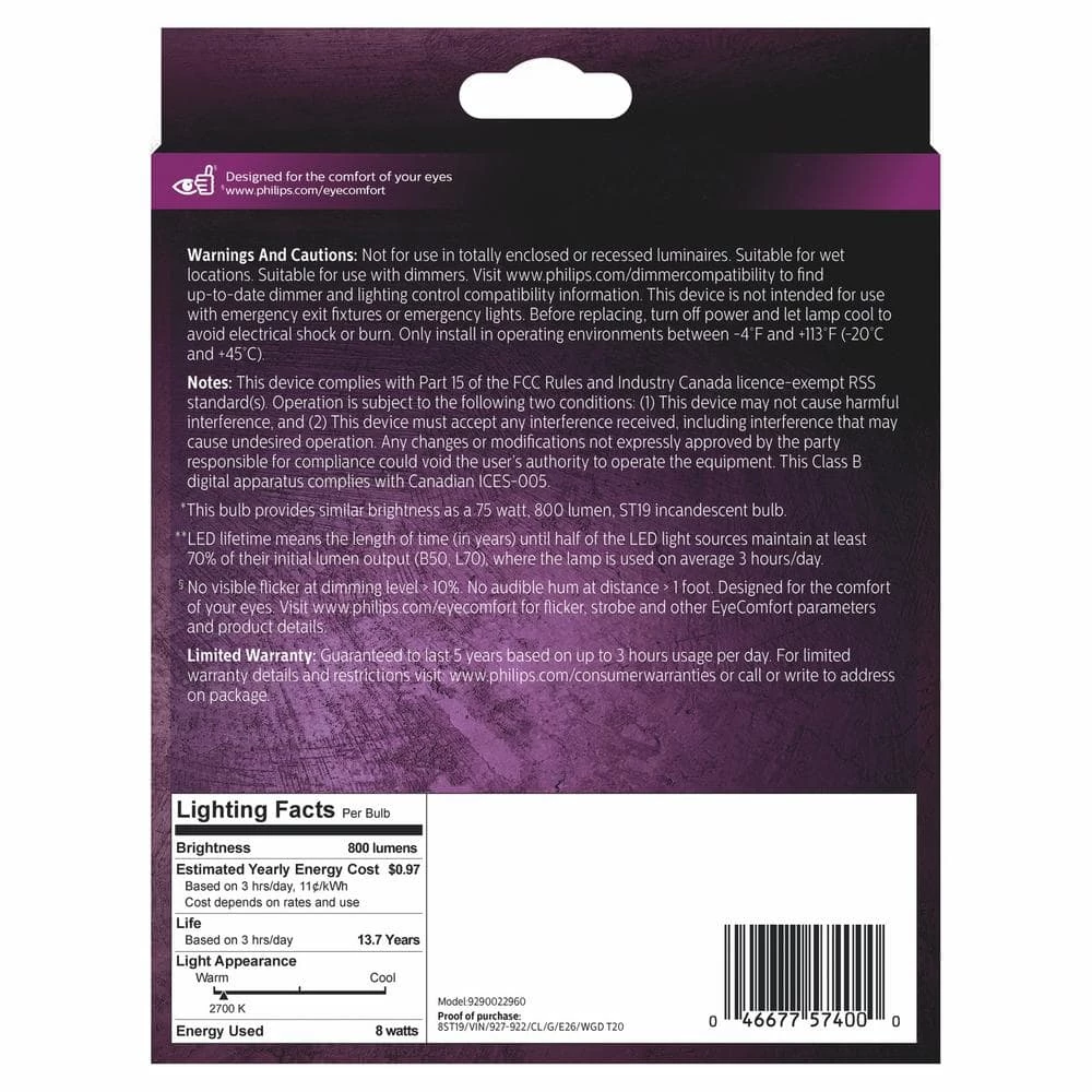 - Complete the look Philips vintage filament LED bulbs are available in a range of shapes and sizes to fit multiple fixtures and applications with a full family of bulbs to choose from, it is easy to coordinate a vintage style throughout your home, indoors or out