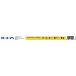 Philips Linear Fluorescent 8-Watt 12 in. T5 bright white light bulb (F8T5/Bright White 3000K) is ideal for use in kitchens and bathrooms or anywhere in your home where a soft white light is desired. It provides general room lighting and creates a comfortable, pleasant atmosphere. Philips T5 12 in. Linear Fluorescent light bulb last at least 6-years.