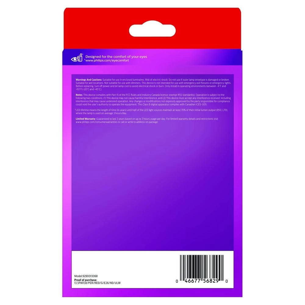 This Philips LED bulb lights up in bright red, while offering the benefits of lifetime and energy savings of LED technology. Great for parties and holidays. Lights up a vibrant color, to create custom environments for special occasions. With a lifetime of over 10,000-hours, use the same bulb to mark the event for years to come.