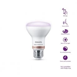 Philips Smart Wi-Fi LED lighting puts you in complete control of your lighting with smart bulbs that are easy to use, functional and affordable. We’ve made all of your favorite high-quality Philips bulbs smarter, just connect them to your existing Wi-Fi network. This Smart Color R20 bulb lets you live life colorfully. Dynamic light modes make any room glow in your favorite color. or use smart tunable white light that adjusts from relaxing warm white to energizing cool-daylight. Use app presets to choose the perfect lighting for your daily activities. with Philips Smart Wi-Fi LED tunable lighting you can play with thousands of shades of white and color and enjoy pre-set well-being modes to find the perfect light temperature. Control your lights wherever you are using the WiZ app or your favorite compatible voice control device. This product requires a Wi-Fi connection to operate wirelessly. Compatible with WiZ apps and products along with Google Assistant, Amazon Alexa and Siri Shortcuts.