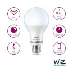 Philips Smart Wi-Fi LED lighting puts you in complete control of your lighting with smart bulbs that are easy to use, functional, and affordable. We’ve made all of your favorite high-quality Philips bulbs smarter, just connect them to your existing Wi-Fi network. Philips Wi-Fi lighting is WiZ-connected and controlled with the WiZ app. This Smart Dimming Daylight 100-Watt equivalent A-shape bulb brightens up your home with a cool, energizing daylight color. Control your lights wherever you are using the WiZ app or your favorite compatible voice control device. This product requires a Wi-Fi connection to operate wirelessly.