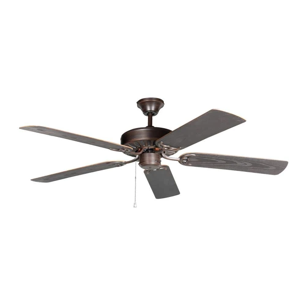 The ProSeries Builder 52 in. Outdoor Oil Rubbed Bronze ceiling fan is an economical, traditional-styled wet-rated ceiling fan perfect for that basic indoor/outdoor fan at an excellent price, making it a contractor/builder favorite. The energy efficient motor draws roughly 1/2 amp on high to provide suitable air movement to any room or outdoor space. Flushmount option allows for use on ceilings lower than 8 ft.