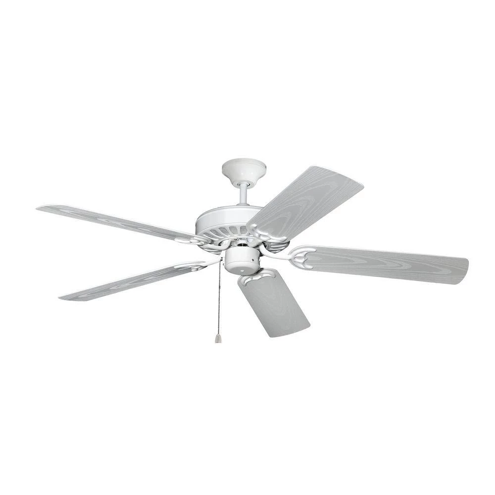 The ProSeries Builder 52 in. Outdoor Pure White ceiling fan is an economical, traditional-styled wet-rated ceiling fan perfect for that basic indoor/outdoor fan at an excellent price, making it a contractor/builder favorite. The energy efficient motor draws roughly 1/2 amp on high to provide suitable air movement to any room or outdoor space. Flushmount option allows for use on ceilings lower than 8 ft.